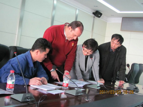 2011年俄方技術總監來我公司針對電廠大型機組安裝超聲波除水垢機器,親臨現場制定安裝方案。